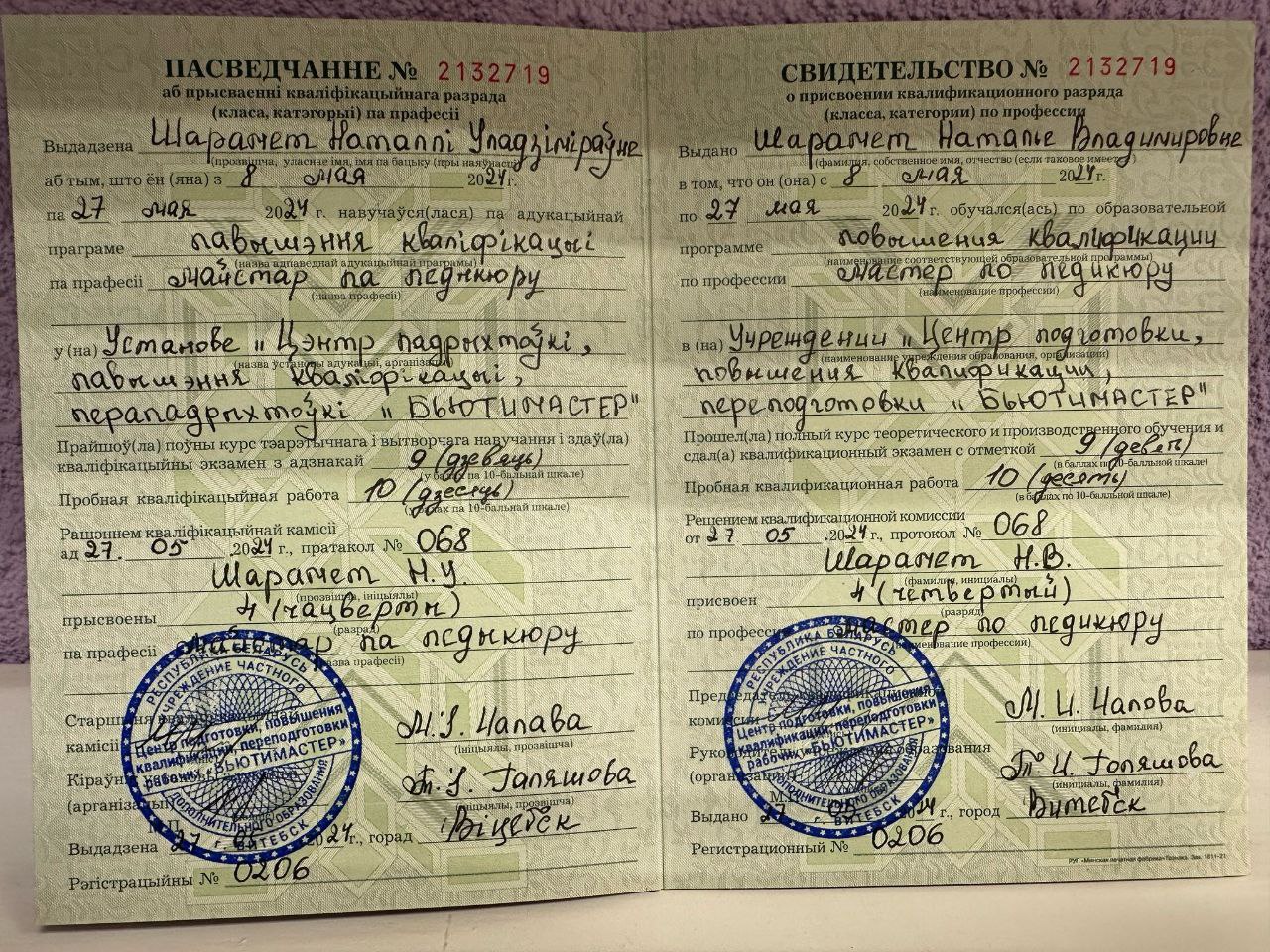 Салон «PROногти» — это уютная и комфортная атмосфера для наших гостей, где каждый сможет почувствовать свою исключительность. Наш специалист, мастер 4 разряда Шарамет Наталья Владимировна, настоящий эксперт в своей области, мастер который постоянно совершенствуется и применяет свои навыки на практике. Более квалифицированного специалиста в области маникюра, педикюра, а также подологии найти крайне трудно, особенно чтобы такой мастер смог владеть в совершенстве данными направлениями в одном лице.